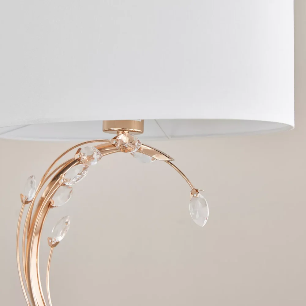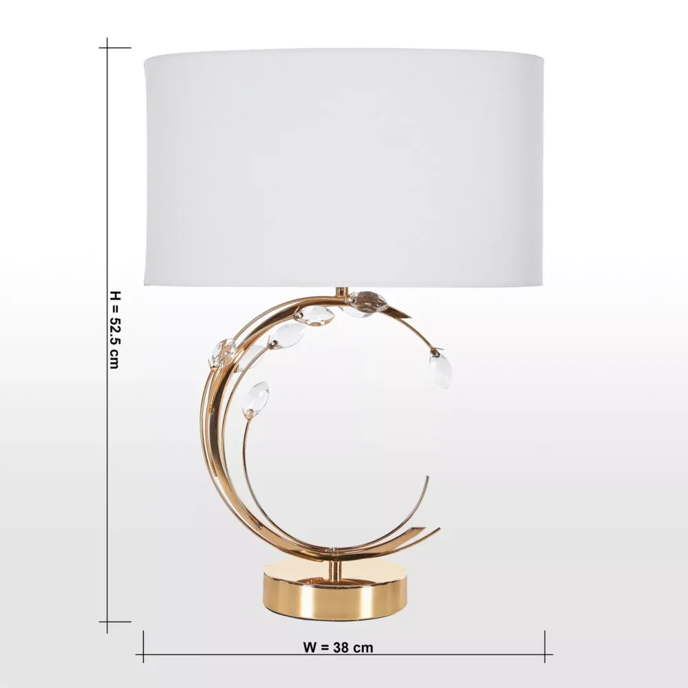 تتميز أباجورة كريستالينا بقاعدة معدنية لامعة مع تفاصيل كريستالية براقة تلتقط الضوء وتخلق تأثيرات ساحرة، في حين يضفي الشابوه الأبيض الناعم جوًا من الراحة والهدوء على أي غرفة. إنها لا تُعتبر مجرد مصدر إضاءة، بل قطعة فنية ترفع من مستوى ديكورك وتضيف لمسة من الفخامة لبيتك.
