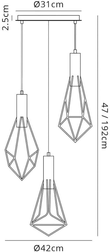 تأتي هذه النجفة بثلاثة رؤوس إنارة بأشكال هندسية فريدة، مصنوعة من المعدن المطلي باللون الأسود لتضفي لمسة من الرقي والتميز على أي مساحة.