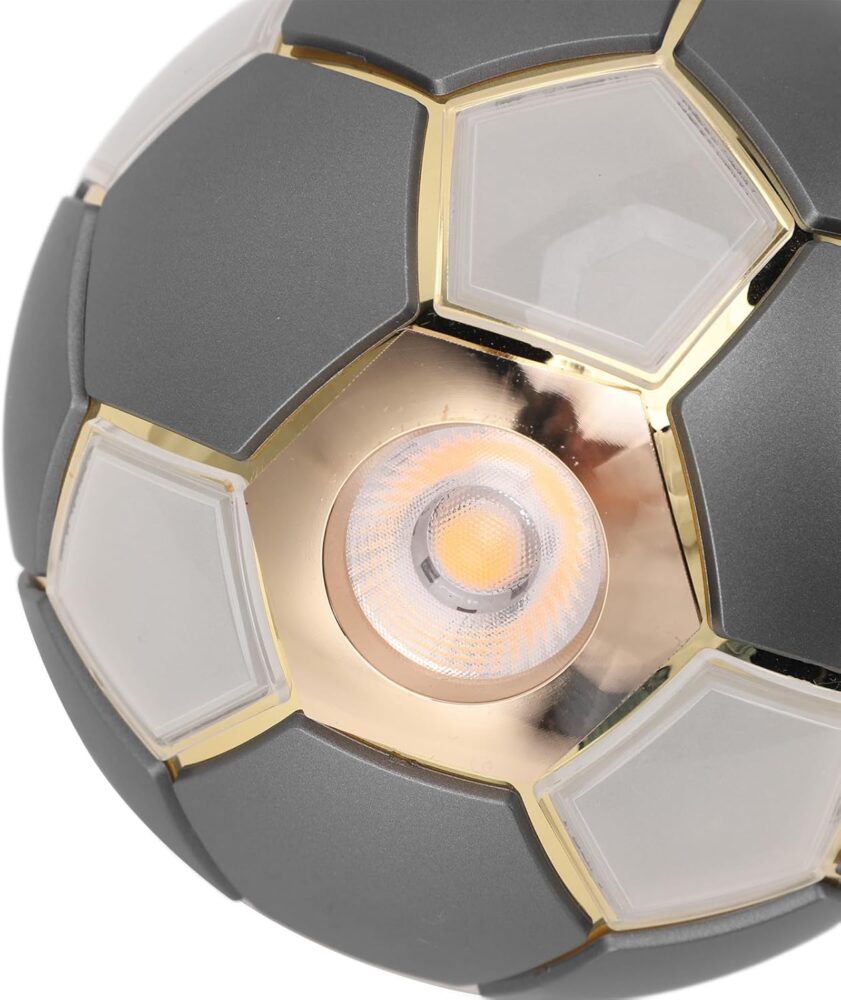 تأتي بتصميم كروي ثلاثي الأبعاد بألوان الرمادى والذهبي والأبيض، مع لمسات معدنية فاخرة تضفي عليها طابعًا عصريًا فاخرًا. مثالية لغرف الأطفال وغرف المعيشة ، أو النوادي الرياضية، أو حتى المساحات العصرية الجريئة.