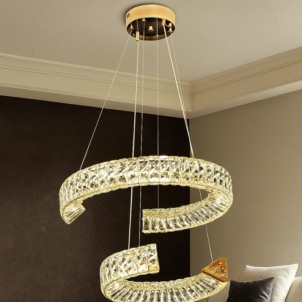 التصميم المثالي للمساحات العصرية. تتميز هذه النجفة بتقنية الإضاءة الحديثة والأنيقة، مما يخلق جوًا دافئًا وجميلًا في أي غرفة. تتميز بتصميمها المميز الذي يجمع بين الكريستال الشفاف ولمسات من اللون الذهبى اللامع، مما يضفي عليها لمسة من الفخامة لا مثيل لها.