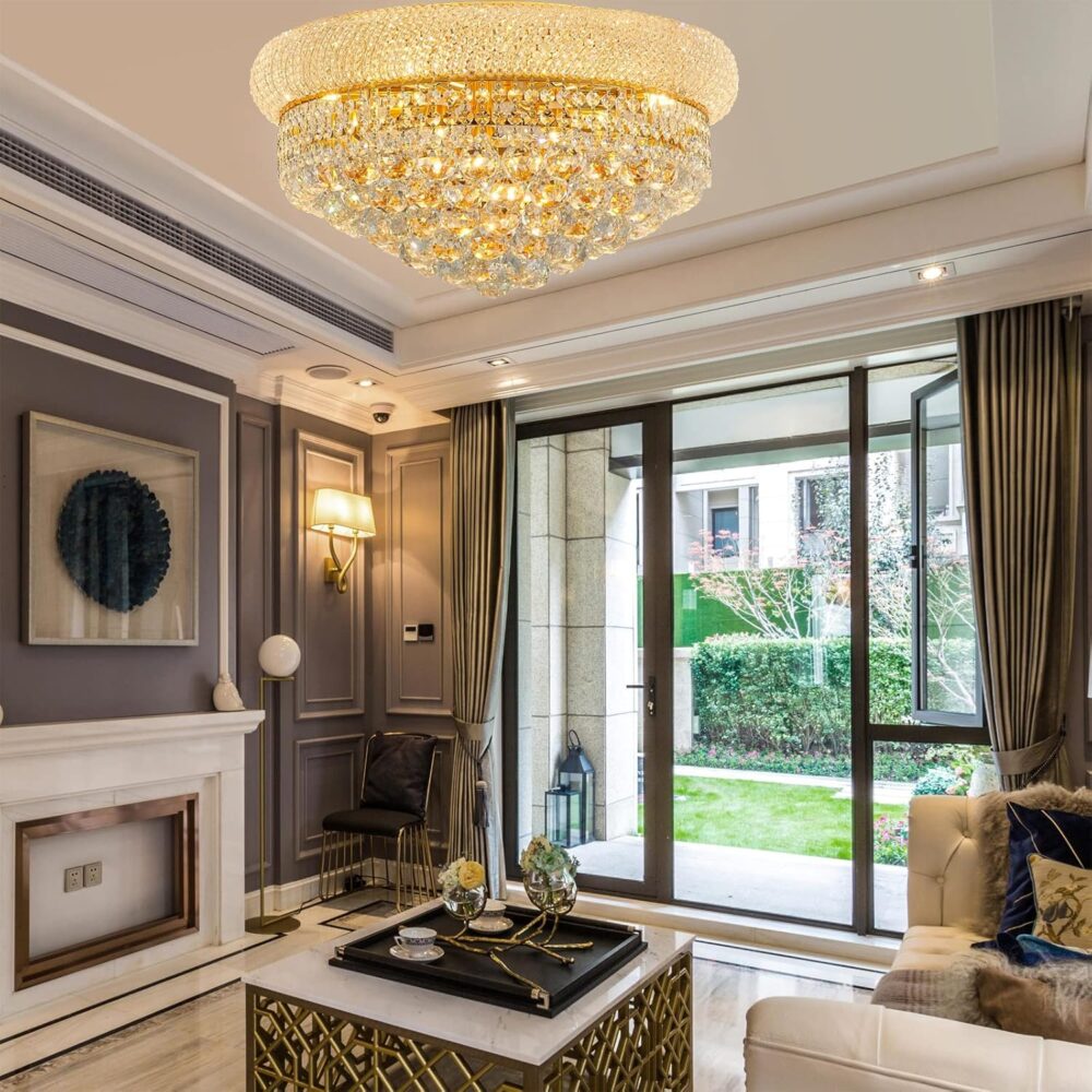 ✔️ هيكل متين مطلى باللون الذهبي مع كريستال عالي الجودة يمنح إضاءة لامعة وفاخرة.