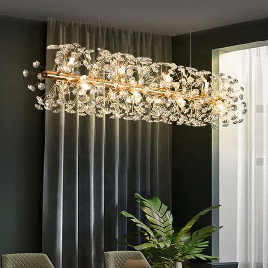 حيث يلتقي التصميم العصري مع فخامة الكريستال البراق. بتفاصيلها المبهرة التي تشبه قطرات الضوء المتلألئة، تمنح هذه النجفة إضاءة خلابة تعكس الرقي والفخامة في كل زاوية من غرفتك.
