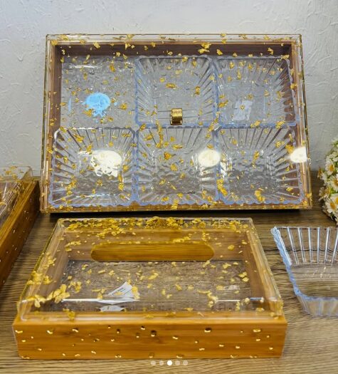 مقسمة من الداخل بأوعية عملية لتقديم المكسرات، الحلويات أو الضيافة بشكل أنيق ومرتب.