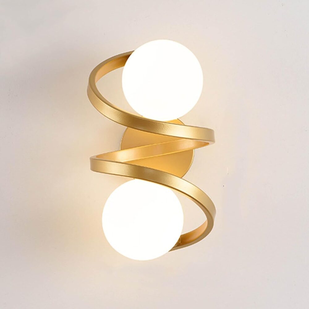 1. مع كرتين من الزجاج الأبيض يحيط بهما إطار معدني ذهبي بتصميم ملتوي.